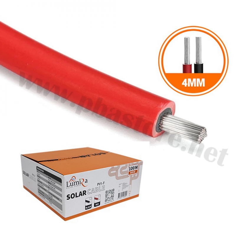 สายไฟโซล่าเซลล์ DC SOLAR CABLE 6MM² RED ยาว 100 เมตร LUMIRA รุ่น PV-2F-RED