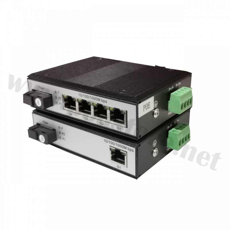 Industrial Media Switch POE 4 port RJ45 10/100/1000M (A) + lndustrial Media Switch 1port RJ45 10/100/1000M (B)