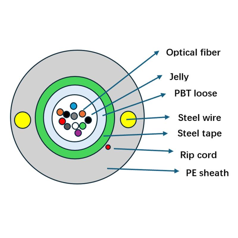 เป็นสายใยแก้วนำแสงชนิด Singlemode ที่ออกแบบมาเพื่อการใช้งานภายนอกอาคาร (Outdoor) โดยเฉพาะ มีโครงสร้าง แบบสายกลมพร้อมเกราะป้องกัน (Armored) ช่วยเพิ่มความแข็งแรง ทนต่อแรงกระแทก การกดทับ และสัตว์กัดแทะ เหมาะสำหรับงานติดตั้งระบบเครือข่าย อินเทอร์เน็ต หรือกล้องวงจรปิดในพื้นที่กลางแจ้งและระยะไกล