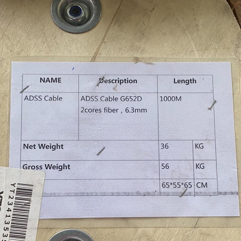 - สายไฟเบอร์ออฟติก 2CORE MINI ADSS 1000M จำนวน 1 ม้วน