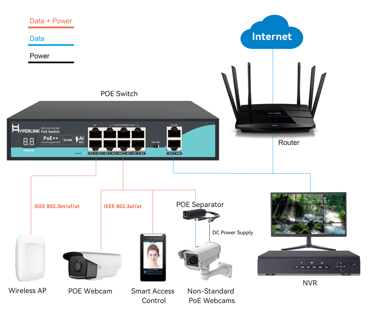 เป็น PoE++ Switch ขนาด 8 พอร์ต (10/100Mbps) พร้อมพอร์ตอัปลิงก์ 2 พอร์ต (10/100/1000Mbps) ที่ออกแบบมาเพื่อรองรับการใช้งานอุปกรณ์เครือข่ายที่ต้องการไฟเลี้ยงผ่านสาย LAN เช่น กล้องวงจรปิด IP Camera, Access Point, และอุปกรณ์เครือข่ายอื่นๆ