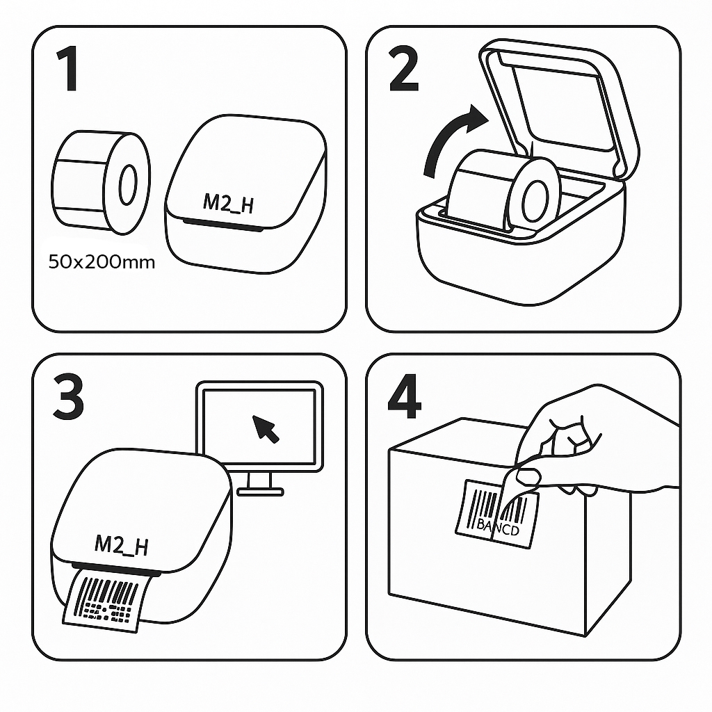 1. ใส่ม้วนสติ๊กเกอร์ลงในเครื่องพิมพ์รุ่น M2_H
