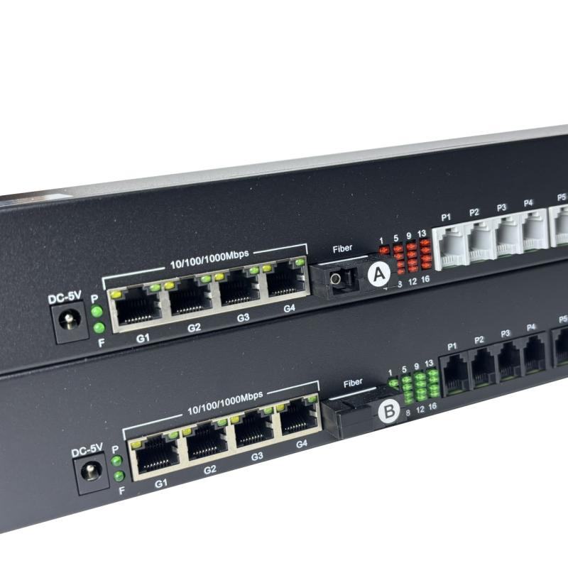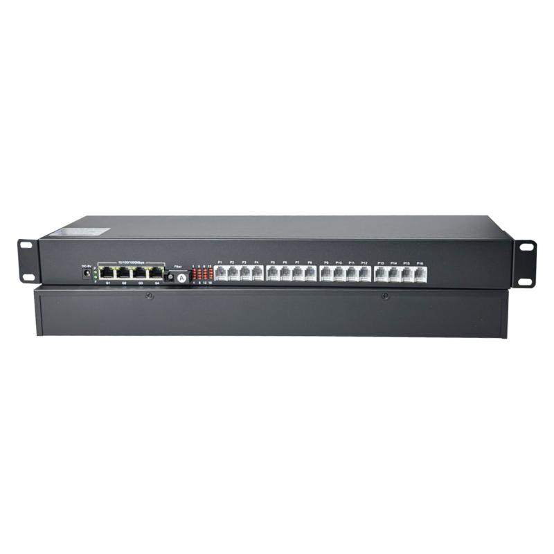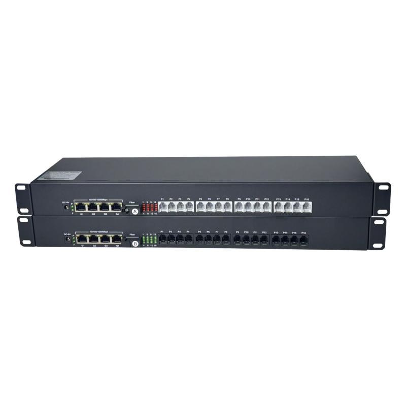 PCM Voice To Telephone Optical 16CH + 4 Gigabit Ethernet 10/100/1000 SC(TX/RX) 1U 20KM