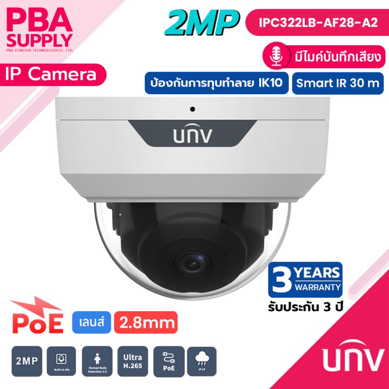 กล้องวงจรปิด 2MP Fixed IR Dome Network Camera UNIVIEW รุ่น IPC322LB-AF28-A2