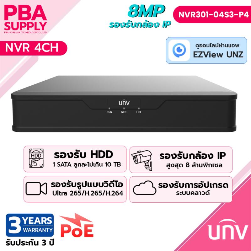 Tags: UNIVIEW,NVR301-04S3-P4,NVR 4CH,PoE 4 Ports,เครื่องบันทึกภาพ,กล้องวงจรปิด,Network Video Recorder,EZStation,UNV-Link,กล้อง IP