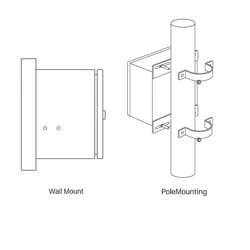 1. ติดตั้งตู้ในตำแหน่งที่ต้องการ เช่น เสาไฟ พื้นที่กลางแจ้ง หรือผนังอาคาร
