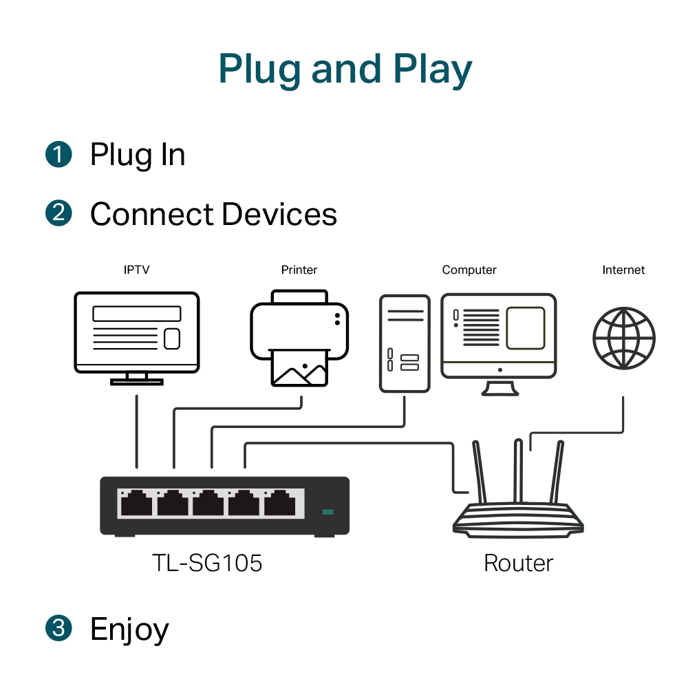 Tags: TP-Link, TL-SG105, Desktop Switch, Gigabit Switch, 5-Port Switch, Plug and Play, Fanless, Green Ethernet, QoS, IGMP Snooping, Network Switch