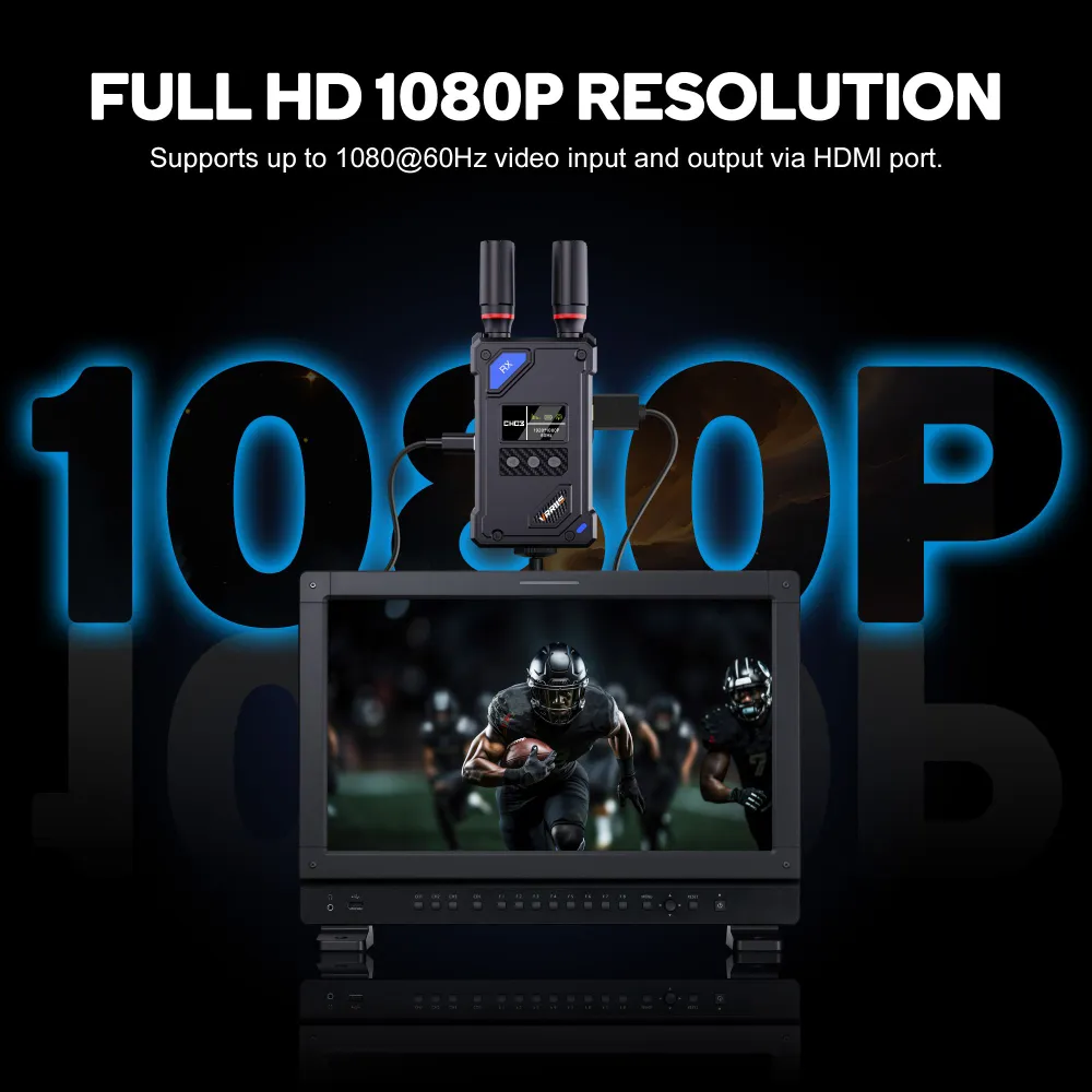 โซลูชันการรับ–ส่งสัญญาณภาพไร้สายระดับมืออาชีพ รองรับการ ปรับสลับได้สูงสุด 20 ช่องสัญญาณ (CH01–CH20) เพื่อหลีกเลี่ยงสัญญาณรบกวน ให้ภาพคมชัดระดับ Full HD 1080P@60Hz ส่งได้ไกลถึง 450 เมตร (1500 ฟุต) ในพื้นที่โล่ง เหมาะสำหรับงานถ่ายทอดสด, Live Streaming, OBS, งานอีเวนต์, กล้องวิดีโอ และโปรดักชันต่าง ๆ ตัวรับ–ส่ง (TX/RX) มาพร้อม หน้าจอ LCD แสดงสถานะแบบเรียลไทม์ ช่วยให้ตรวจสอบสัญญาณได้ง่าย และ พอร์ต UVC (USB Video Output) สำหรับเชื่อมต่อคอมพิวเตอร์ใช้งานกับ OBS หรือซอฟต์แวร์ไลฟ์สตรีมได้ทันที รองรับการใช้งานแบบพกพาด้วย แบตเตอรี่ NP-F Series หรือจ่ายไฟผ่าน USB Type-C (5V/2A) ให้การทำงานคล่องตัวในทุกสถานการณ์