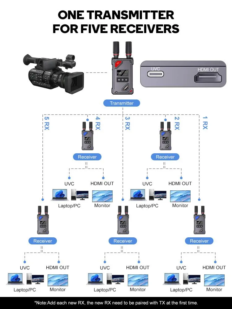 • ตัวรับ (RX) มี พอร์ต UVC เชื่อมต่อคอมพิวเตอร์ใช้งานกับ OBS/Live Streaming ได้ทันที ไม่ต้องใช้ Capture Card เพิ่ม