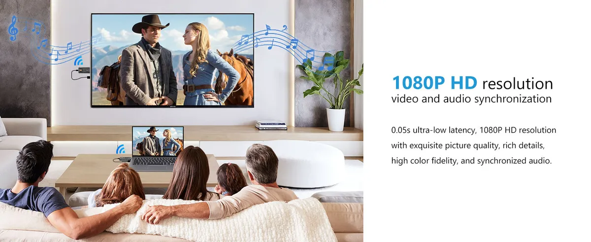 • เมื่อเชื่อมต่อเรียบร้อย ภาพและเสียงจะถูกส่งแบบไร้สายทันที ด้วย ดีเลย์ต่ำเพียง 0.05 วินาที ภาพคมชัด ลื่นไหล
