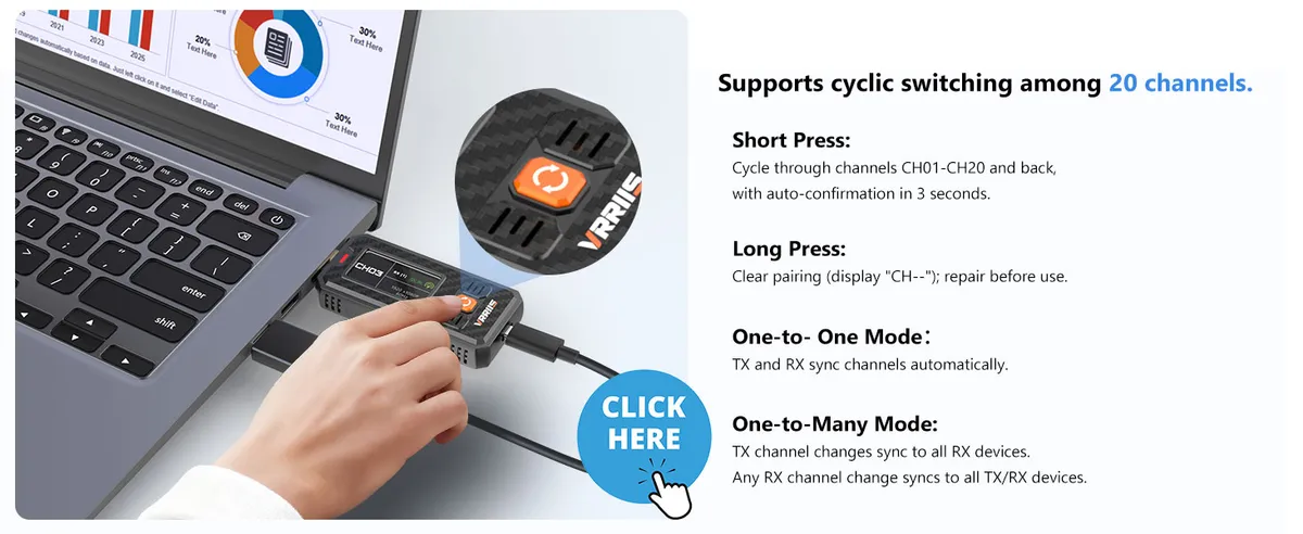 • รองรับการสลับช่องสัญญาณได้ถึง 20 Channels ลดปัญหาสัญญาณรบกวน เลือกช่องที่เสถียรที่สุดได้เอง