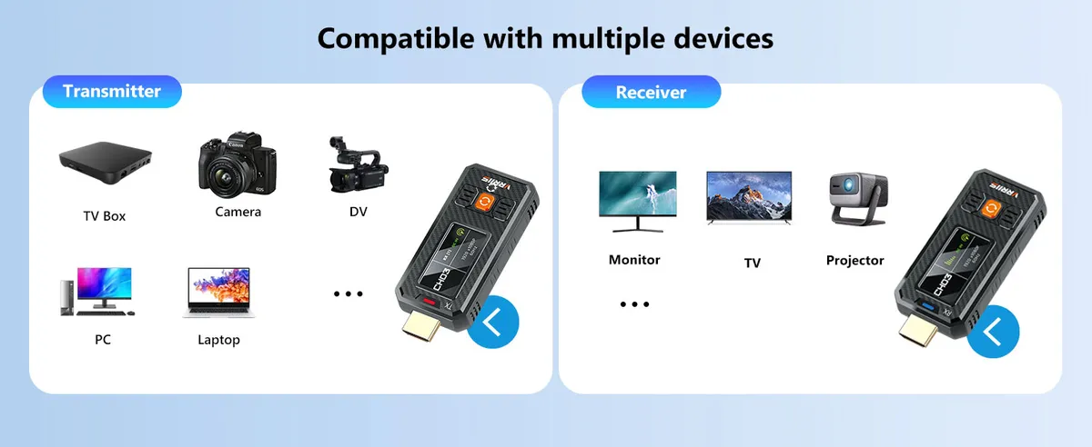 tags : HDMI Wireless, HDMI ไร้สาย, Wireless HDMI, VRRiiS, WL087MINI,รับส่งสัญญาณภาพไร้สาย, ส่งภาพไร้สาย, HDMI 1080P, Full HD 1080P,Low Latency 0.05s, ดีเลย์ต่ำ, 20 Channels, สลับช่องสัญญาณ,One to Four, 1TX 4RX, ส่งภาพหลายจอ,อุปกรณ์พรีเซนต์, ห้องประชุม, งานอีเวนต์, ไลฟ์สด, ถ่ายทอดสด,Mini HDMI Wireless, พกพา, Business Trip, Plug and Play
