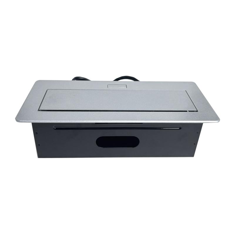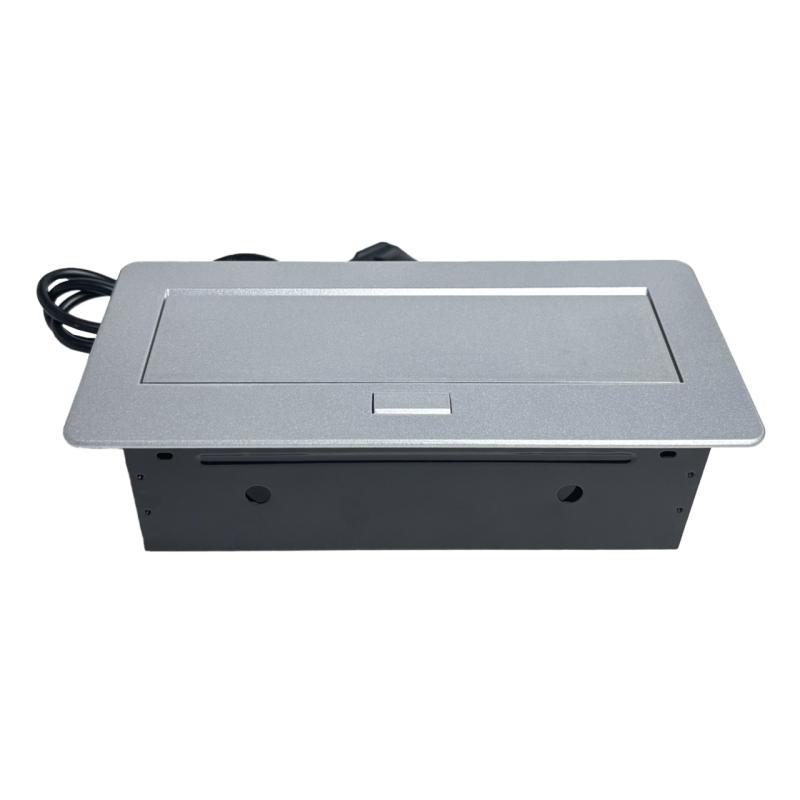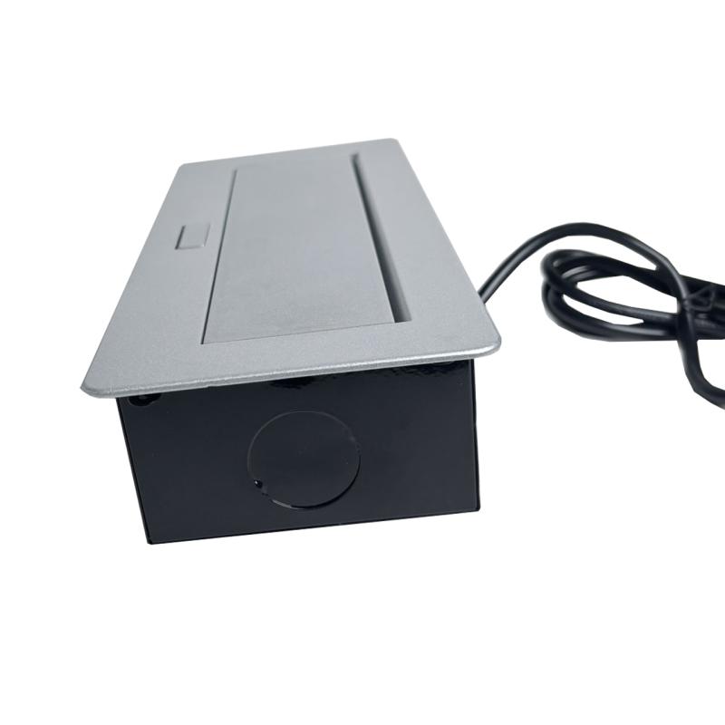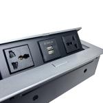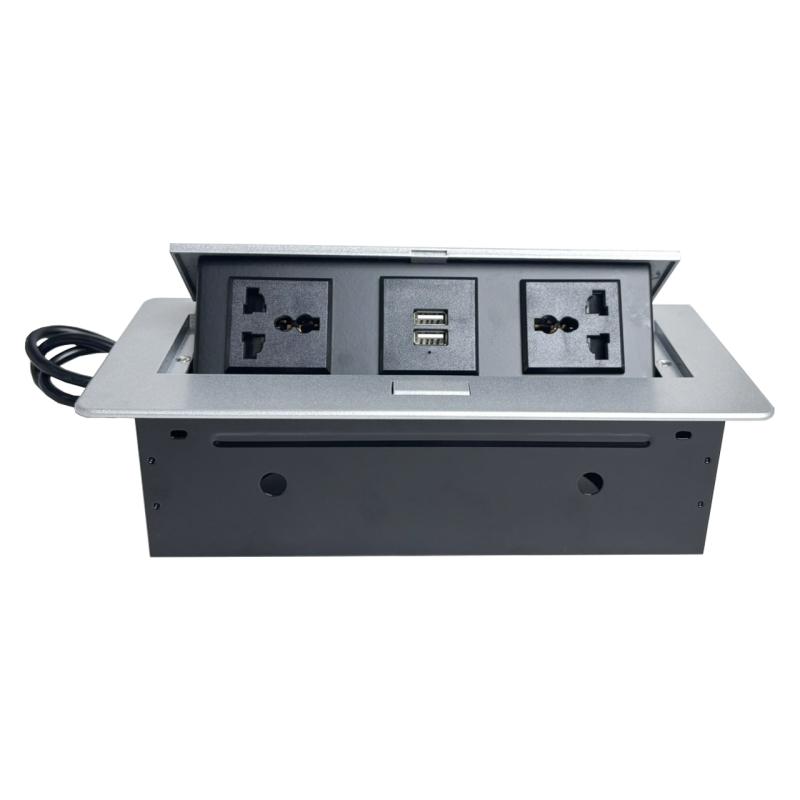 กล่องปลั๊กไฟฝังโต๊ะสำนักงาน ป็อปอัพแบบมีฝาเปิด-ปิด 2 US PLUG / 2USB (สีเงิน) พร้อมสายไฟ