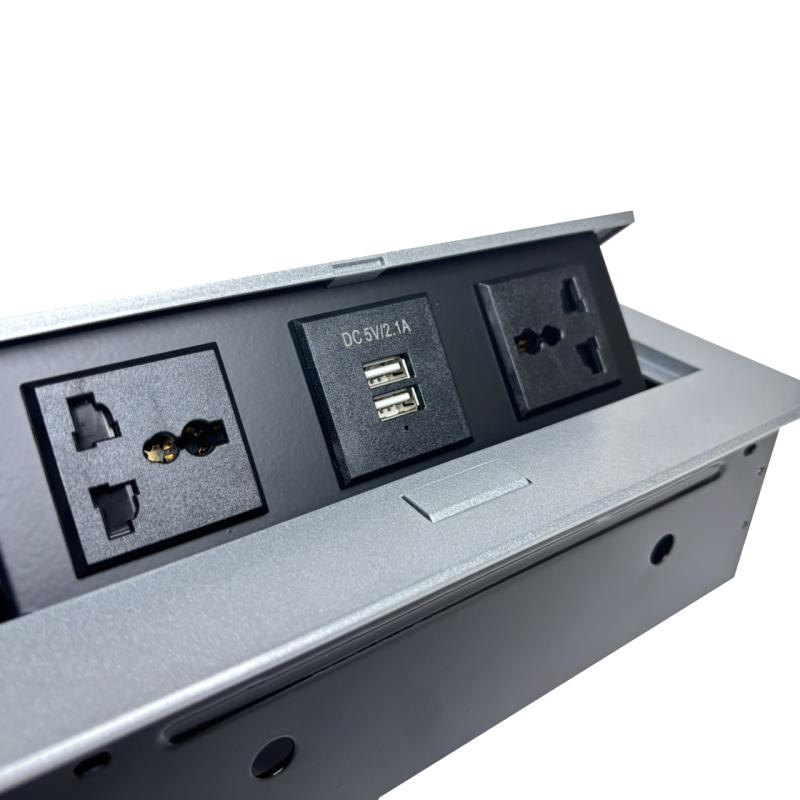 ใช้สำหรับฝังบนโต๊ะทำงาน โต๊ะประชุม โต๊ะสำนักงาน มีเต้ารับ 2 ช่อง ช่องเสียบแบบมาตราฐานสากล และช่องเสียบ USB 2 ช่อง