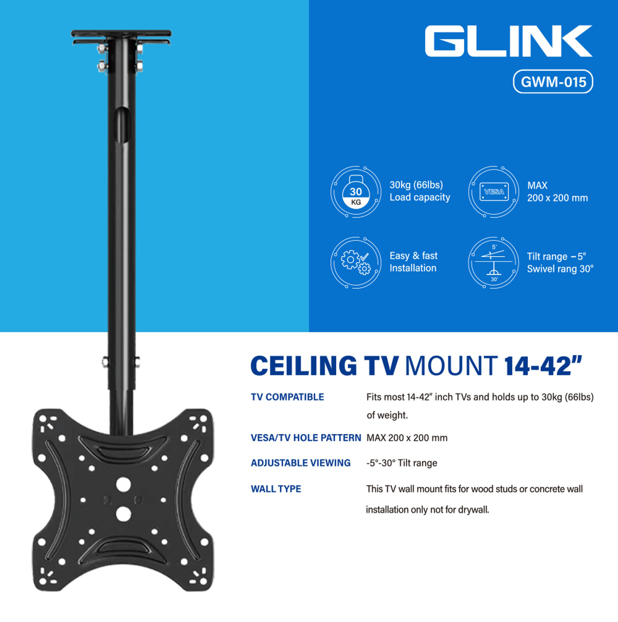 tags : ขาแขวนทีวี, ขายึดทีวี, ขาแขวนทีวีห้อยหัว, Ceiling Mount TV, ขาแขวนทีวีเพดาน, GWM-015, GLINK, TV Mount, TV Bracket, ที่แขวนทีวี 14-42 นิ้ว, ที่แขวนทีวีบนเพดาน, อุปกรณ์ติดตั้งทีวี, ขาแขวนทีวีร้านอาหาร, ขาแขวนทีวีห้องประชุม, ที่แขวนทีวีร้านกาแฟ, ขาแขวนทีวีปรับหมุนได้, Ceiling TV Mount 14-42 inch