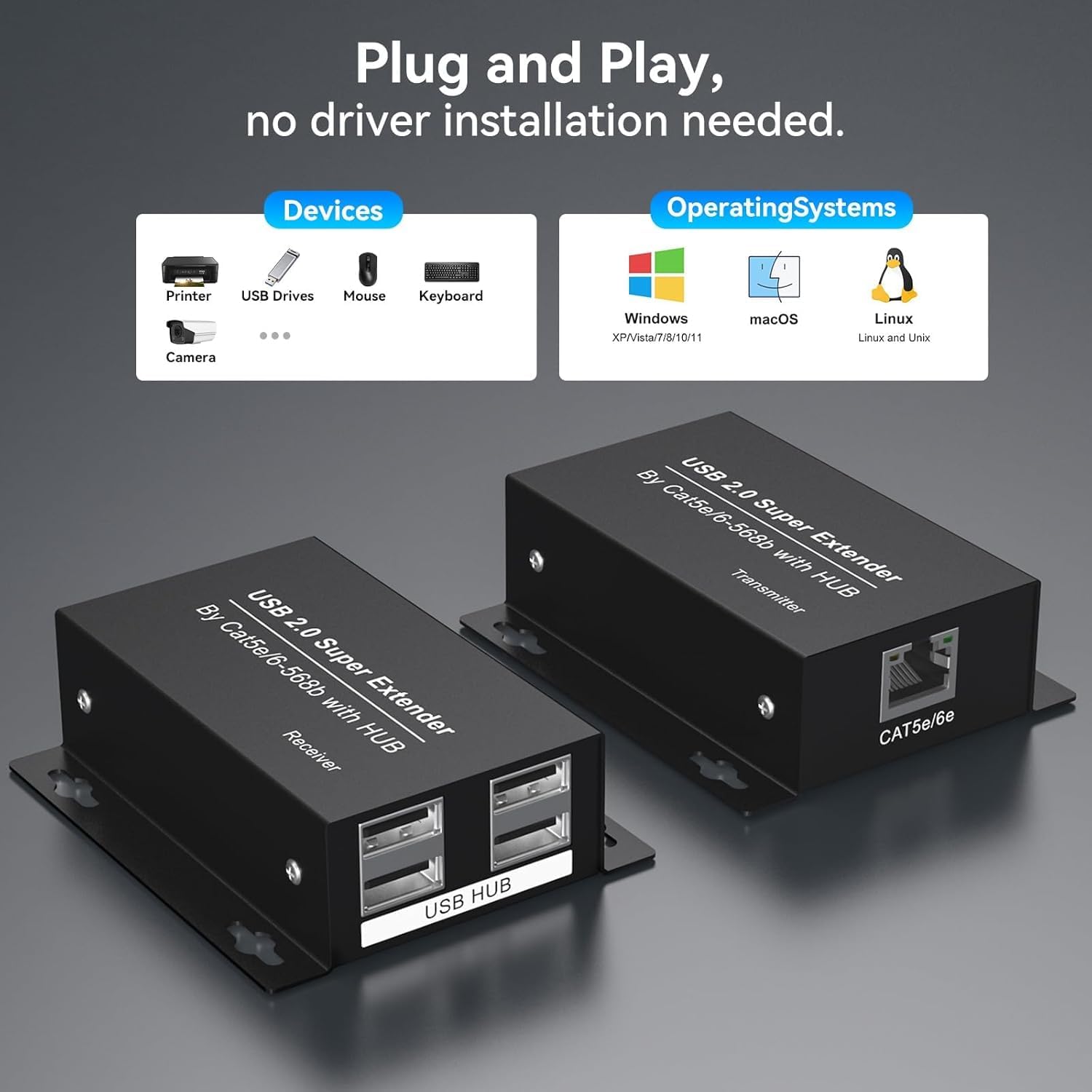 อุปกรณ์ขยายสัญญาณ USB 2.0 ผ่านสาย LAN (UTP Cat5e/Cat6) ช่วยให้สามารถเชื่อมต่ออุปกรณ์ USB ได้ไกลสูงสุดถึง 100 เมตร โดยไม่สูญเสียคุณภาพสัญญาณ เหมาะสำหรับงานติดตั้งระบบ, ห้องควบคุม, งานอุตสาหกรรม, ระบบคีออสก์ และงานที่ต้องใช้อุปกรณ์ USB ระยะไกลจากคอมพิวเตอร์ต้นทาง