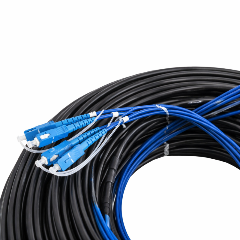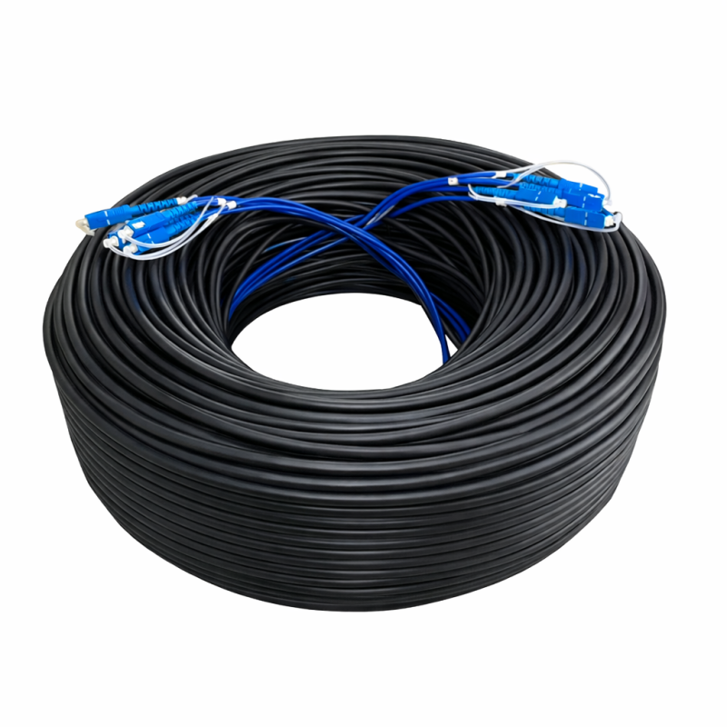 สายไฟเบอร์ออฟติกสำเร็จรูปแบบกลม ชนิดหุ้มเกราะ (Armored) ออกแบบมาสำหรับงานติดตั้งภายนอกอาคารและพื้นที่ที่ต้องการความทนทานสูง ป้องกันการกัดแทะจากสัตว์ เช่น กระรอก หรือหนู พร้อมหัวคอนเนคเตอร์ SC/UPC ทั้งสองด้าน ใช้งานได้ทันทีโดยไม่ต้องเข้าหัวสายเอง รองรับการส่งสัญญาณระยะไกลด้วยไฟเบอร์แบบ Single Mode (SM) ขนาด 4 Core ความยาว 200 เมตร เหมาะสำหรับงานระบบเครือข่าย CCTV, Internet, FTTH และงานสื่อสารข้อมูลความเร็วสูง